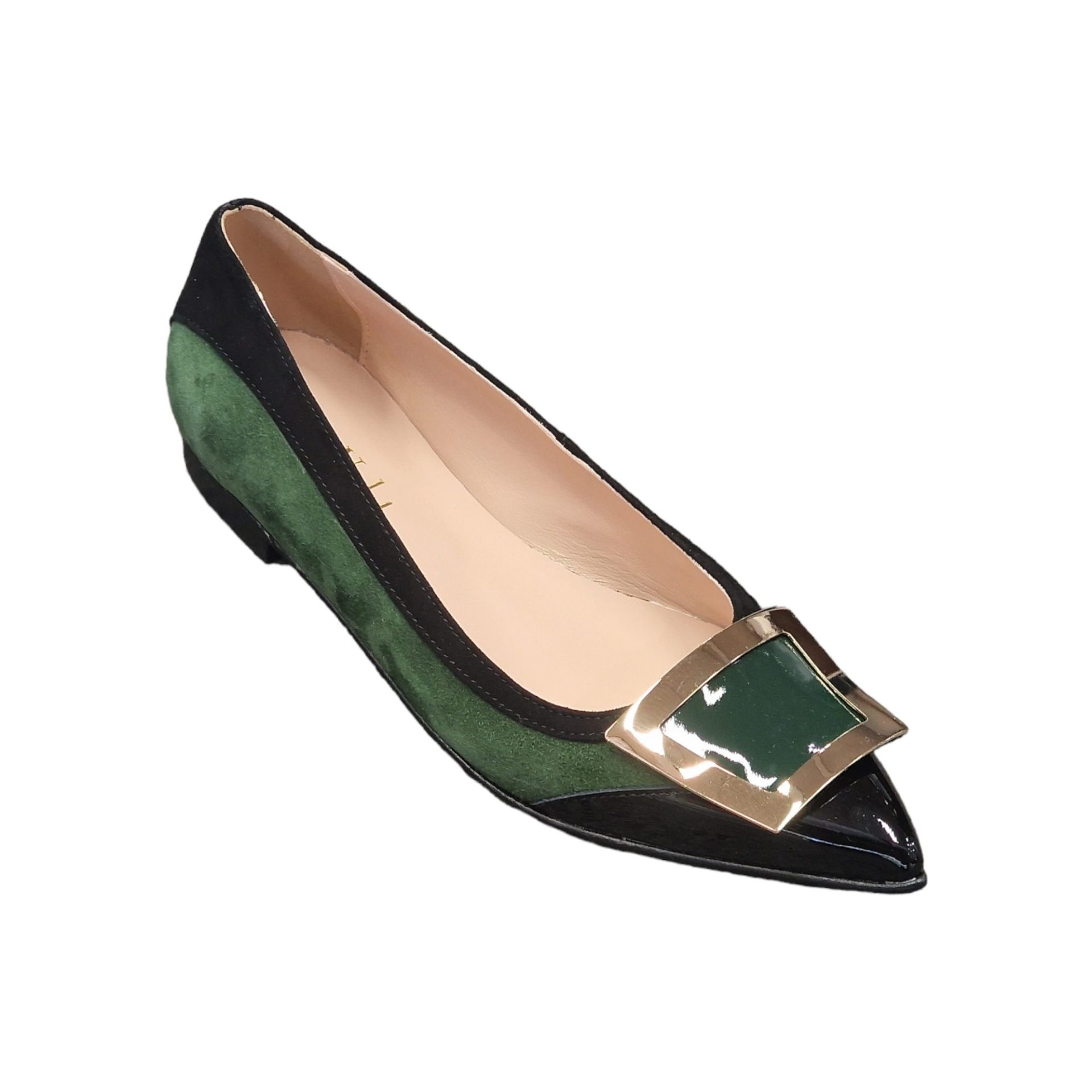 BALLERINE IN SUEDE E VERNICE NERO E VERDE 10 mm