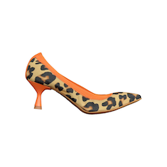 Décolleté in tessuto con profilo elasticizzato per una comoda calzata. A punta con tacco rocchetto rivestito ton Sur ton.