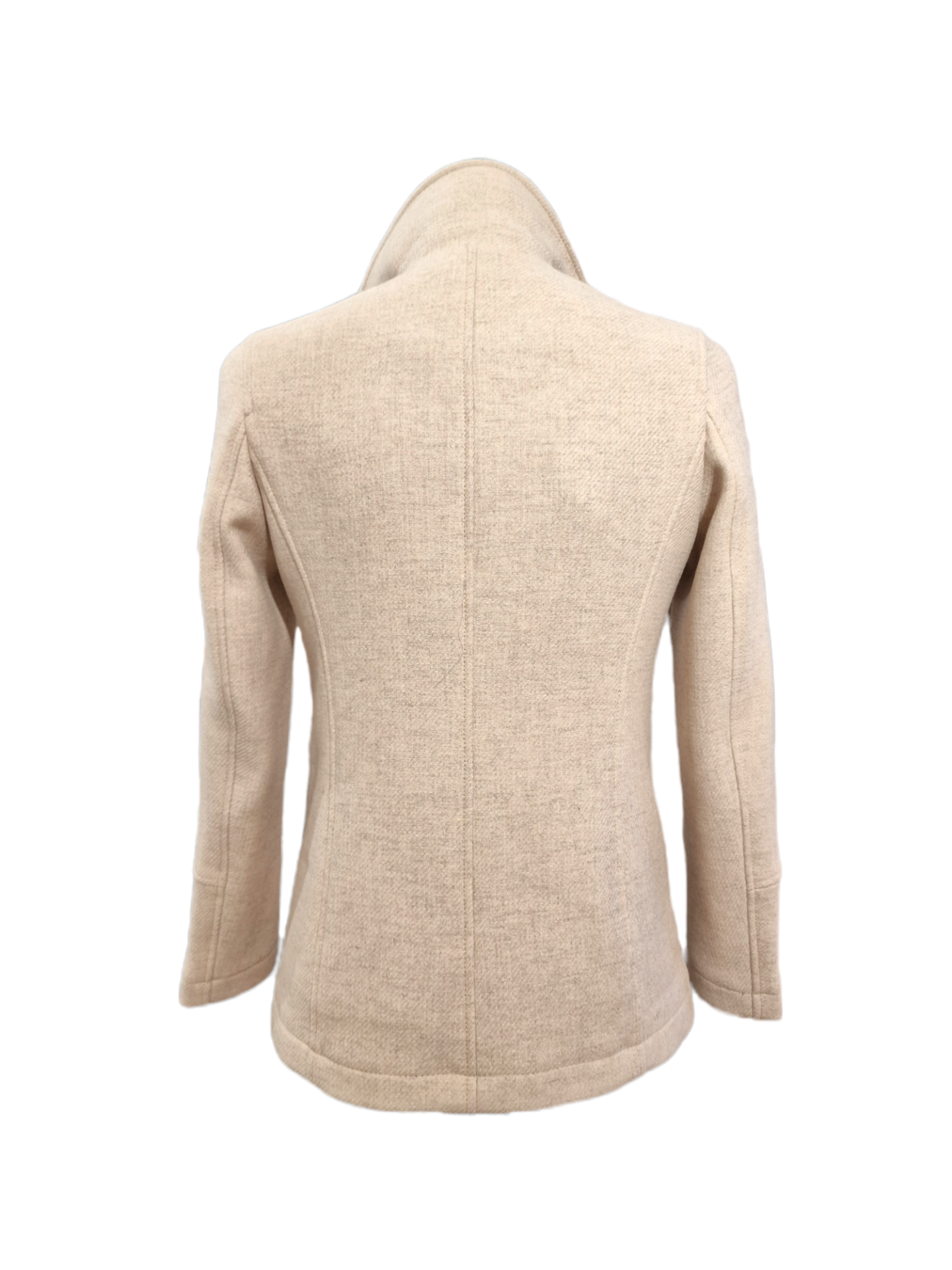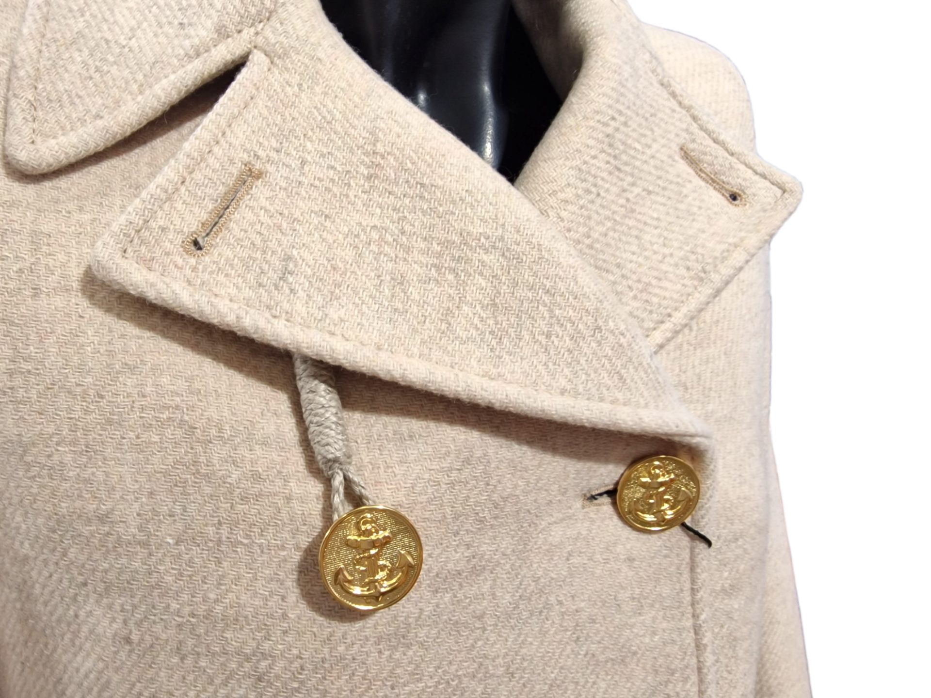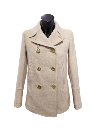 Iconico Peacoat di Camplin. Cappotto doppiopetto, è una vera icona dello stile Royal Navy, mantenendo quello stile senza tempo. Ampi revers all’ inglese valorizzando la figura femminile. L’interno è dotato del sistema Air Warm*, che protegge la schiena dal freddo. Le tasche confortevoli e riscaldanti sono poste sui fianchi. L’abbottonatura sul corpo è a tre e il Cordage chiude la parte alta del revers per proteggere il collo.