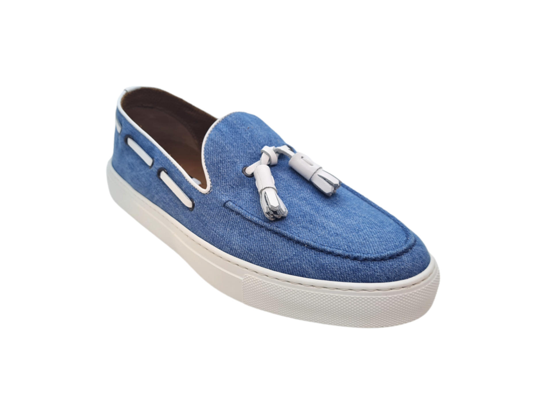 MOCASSINI “Sneakers” IN TESSUTO JEANS AZZURRO FONDO GOMMA