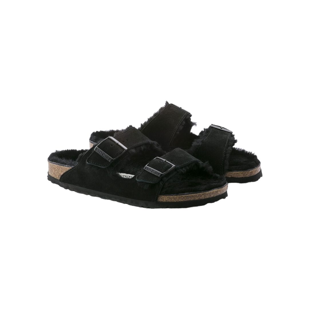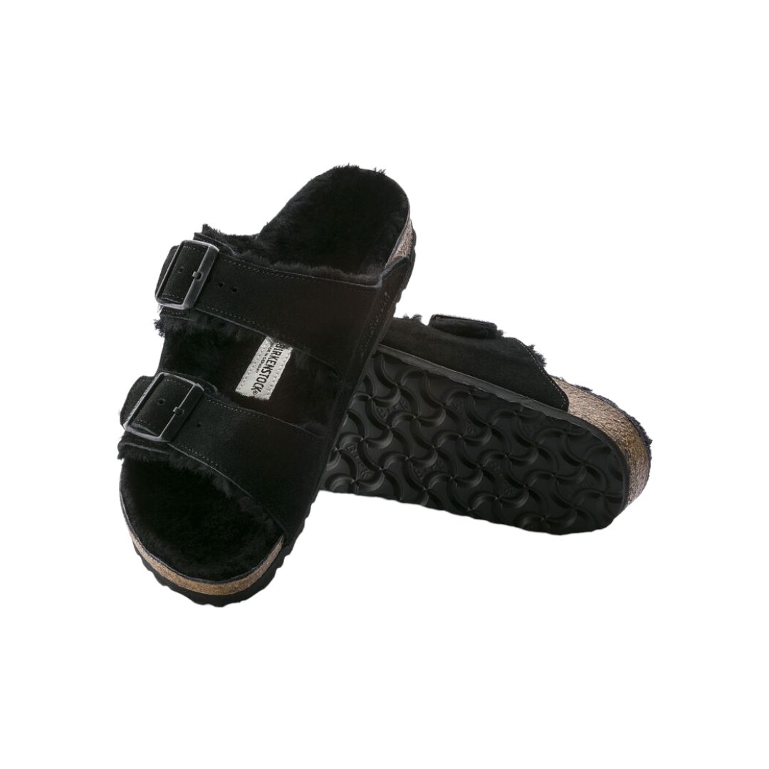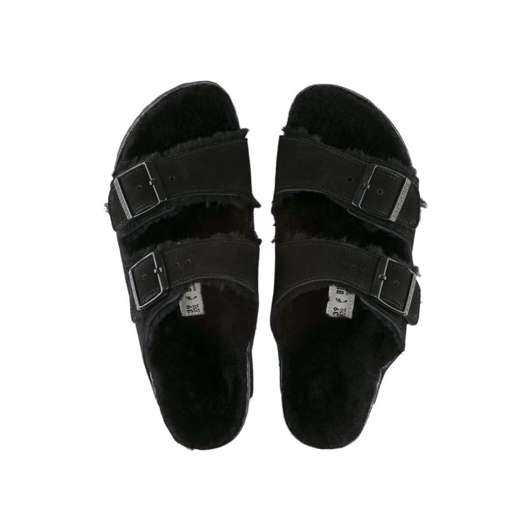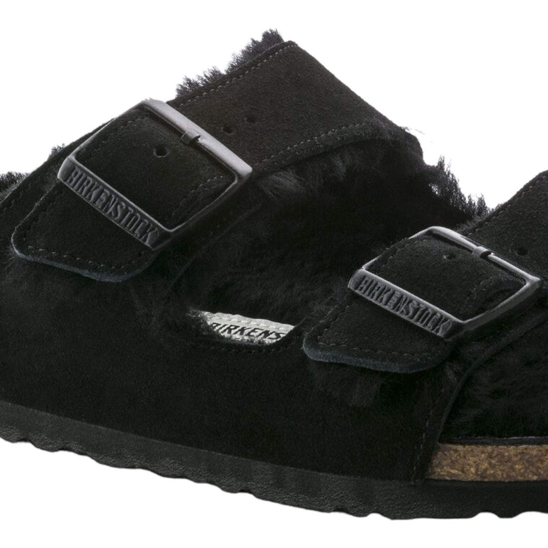 SANDALI “Arizona” IN SUEDE/ PELLICCIA DI AGNELLO NERO