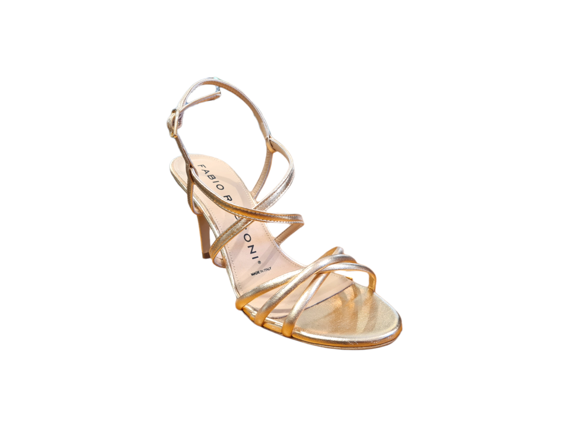Elegante sandalo in pelle oro dai morbidi listini. Raffinato e prezioso con un design attualissimo ma che al tempo stesso  non volta le spalle allo stile che da sempre contraddistingue questo modello che possiamo definire evergreen ovvero un classico senza tempo.