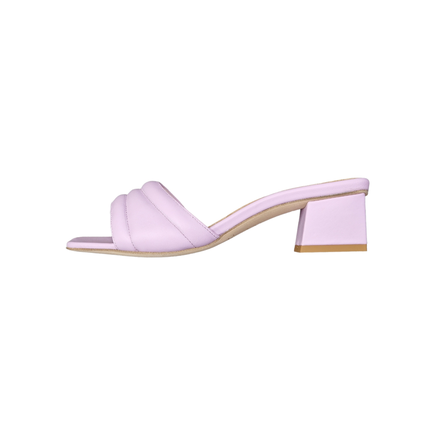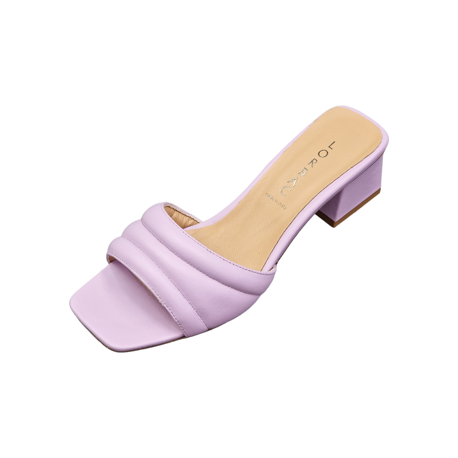 Sandalo mules con tacco quadrato in morbida nappa Altezza tacco 50 mm e punta quadra.