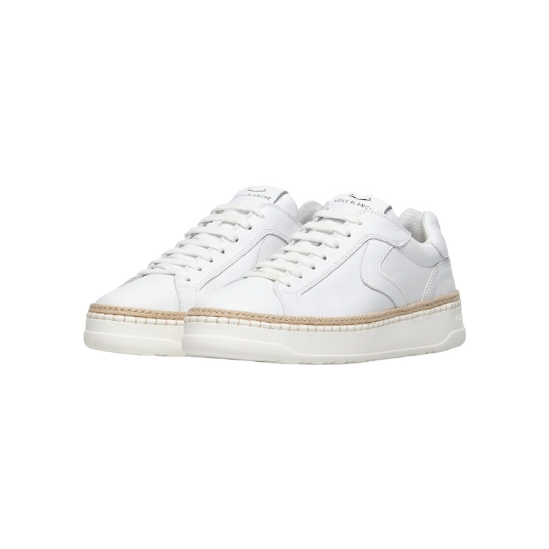 Sneaker in vitello con dettagli di corda intrecciata lungo il bordo. Soletta interna estraibile e suola in gomma personalizzata. Estiva, fresca, perfetta per il giorno o per la sera: nuova versione della sneaker con tomaia in morbido vitello, essenziale nelle linee e decorata da motivo di corda intrecciata sul bordo. Confortevole grazie alla soletta interna estraibile, è completata da suola in gomma ultraleggera con impunture a vista.