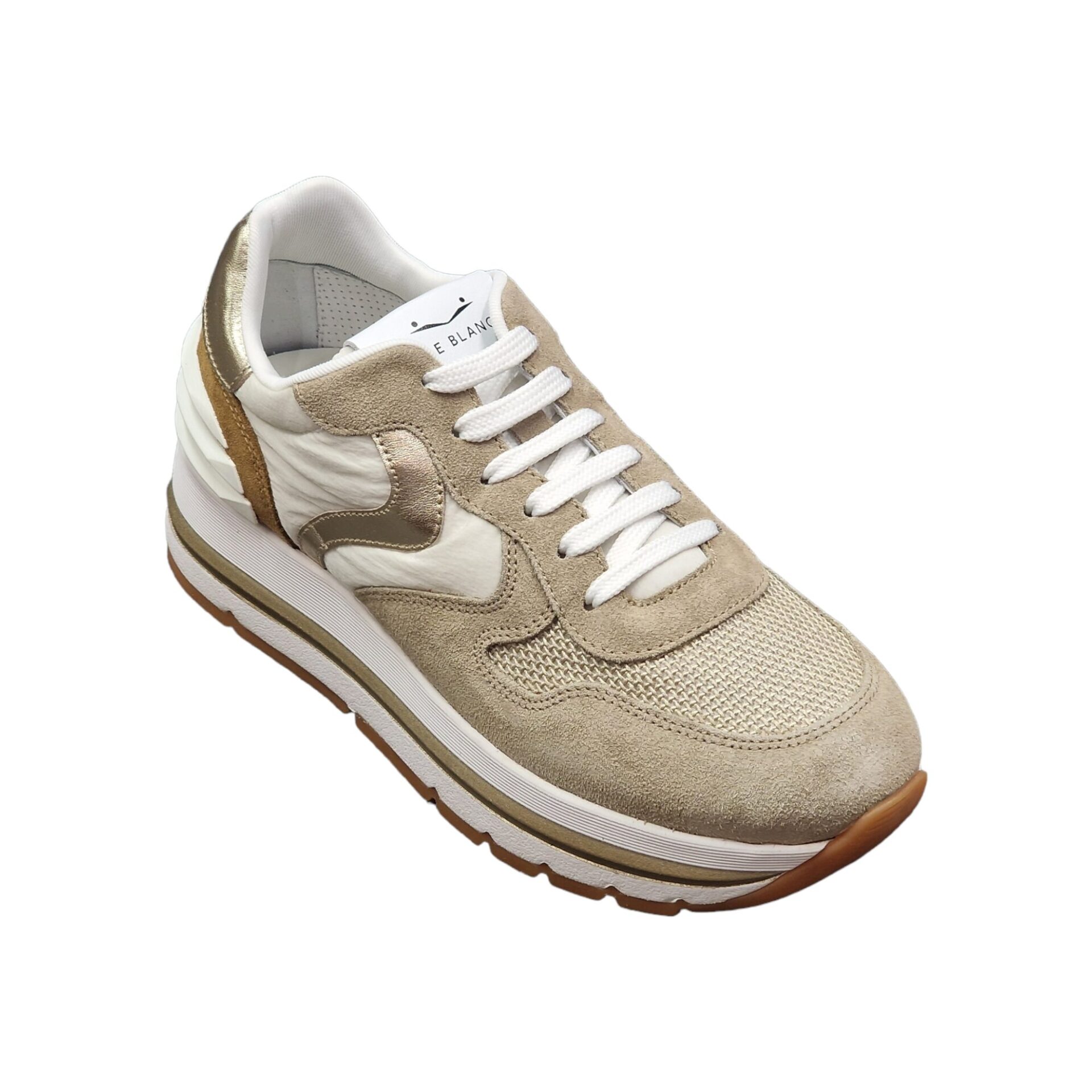 SCARPE STRINGATE “Sneakers Maran Power” IN CAMOSCIO E PELLE BIANCO/BEIGE FONDO GOMMA
