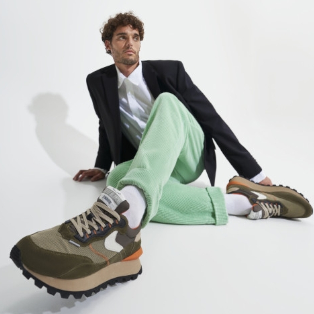 Lo stile sportivo in città si chiama Voile Blanche. Le nuove sneaker Qwark Hype rirendono le linee delle running shoes trasformandole in una calzatura ideale per gli everyday looks. La tomaia in tessuto tecnico e suede si accende dei tocchi energetici di pelle e impunture a contrasto, con l’accento tecnologico dello spoiler in gomma sotto il tallone. La suola in gomma ultra leggera si completa con un battistrada dentellato, perfetto per tutte le superfici.