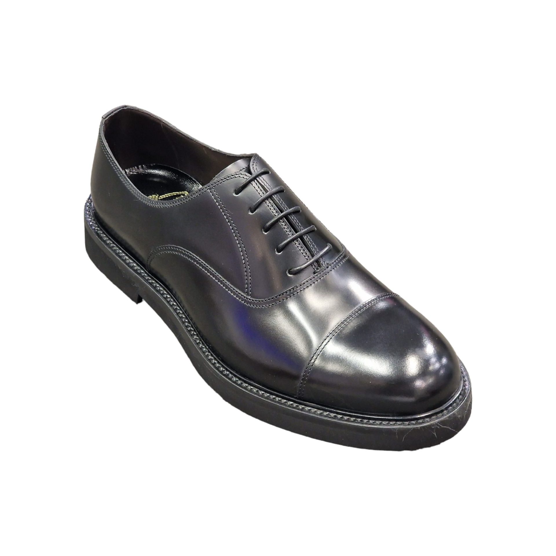 SCARPE STRINGATE “Derby” IN VITELLO NERO FONDO GOMMA